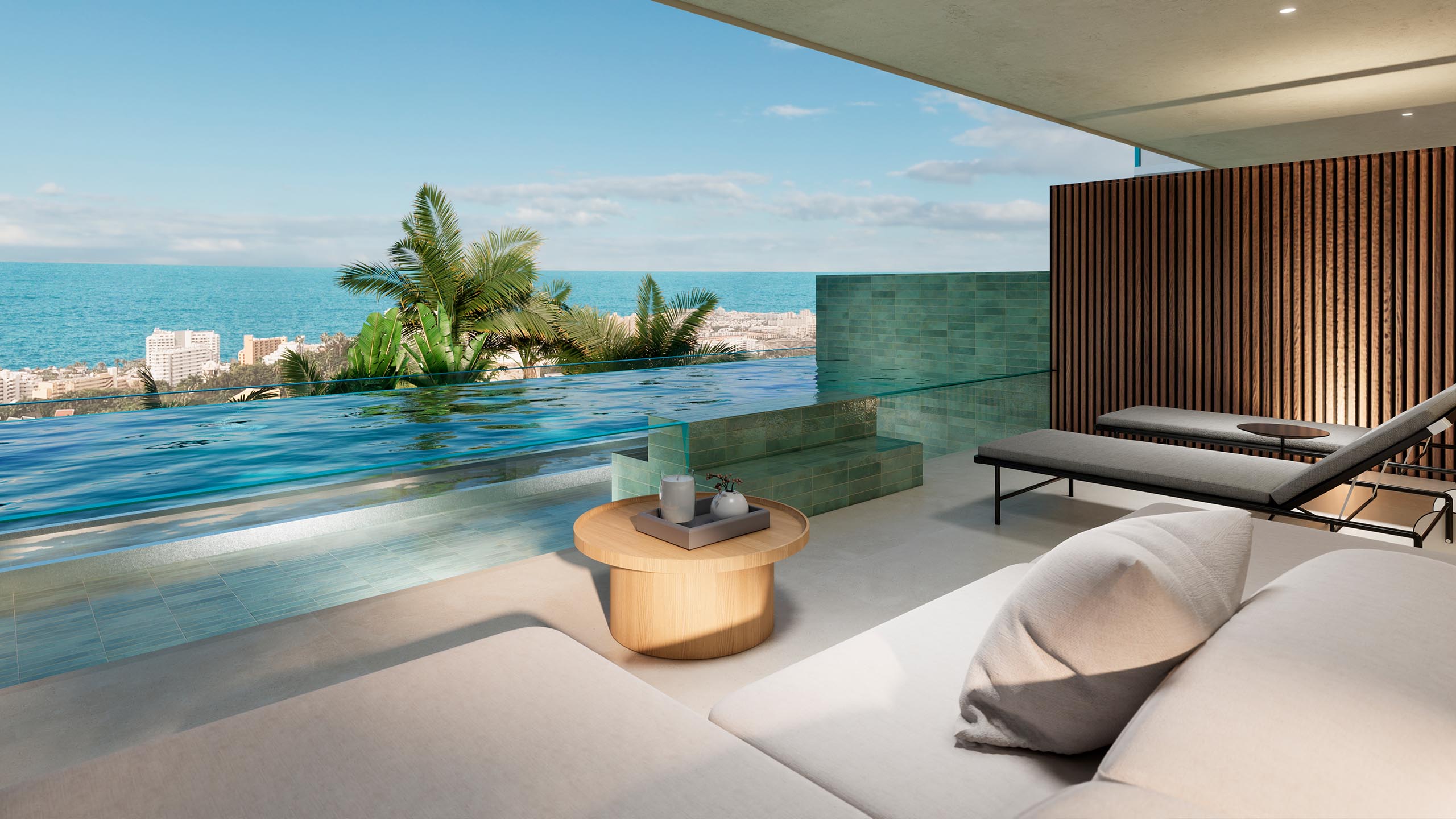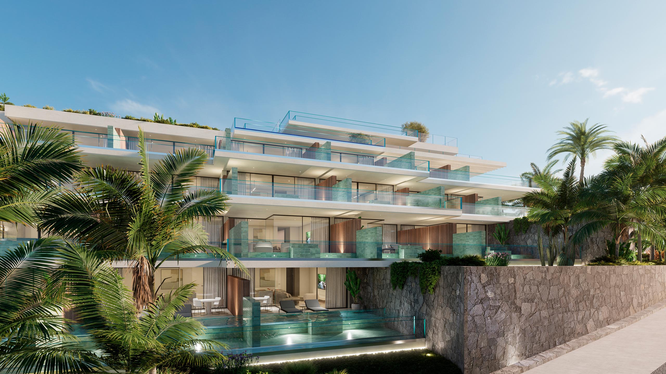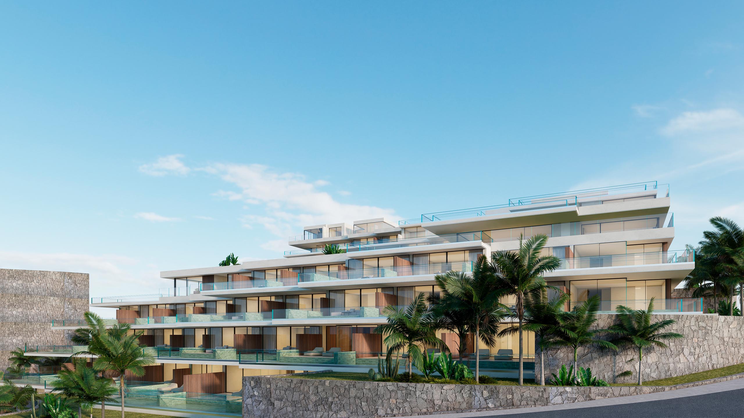 En ENA Luxury Homes se elevan 63 exclusivas viviendas de 1 a 6 dormitorios, distribuidas entre elegantes apartamentos y penthouse. Cada una de ellas ha sido concebida como una pieza única, donde la arquitectura contemporánea se une a la elegancia y al confort más absoluto. Los interiores, amplios, con acabados de alta gama y bañados por la luz natural, se abren hacia el horizonte para integrar las espectaculares vistas al océano Atlántico.