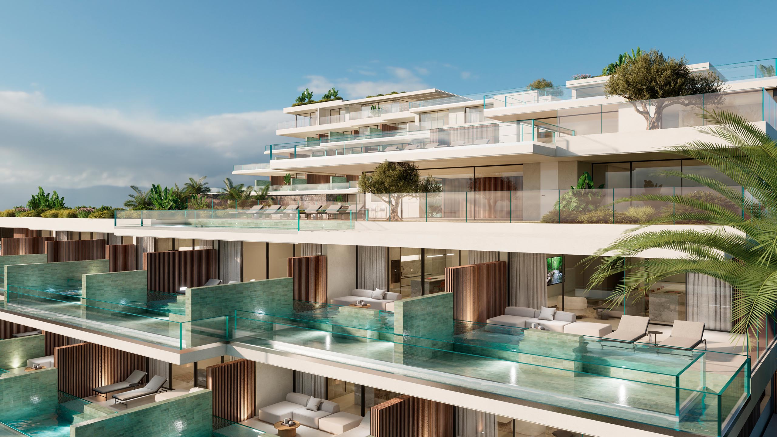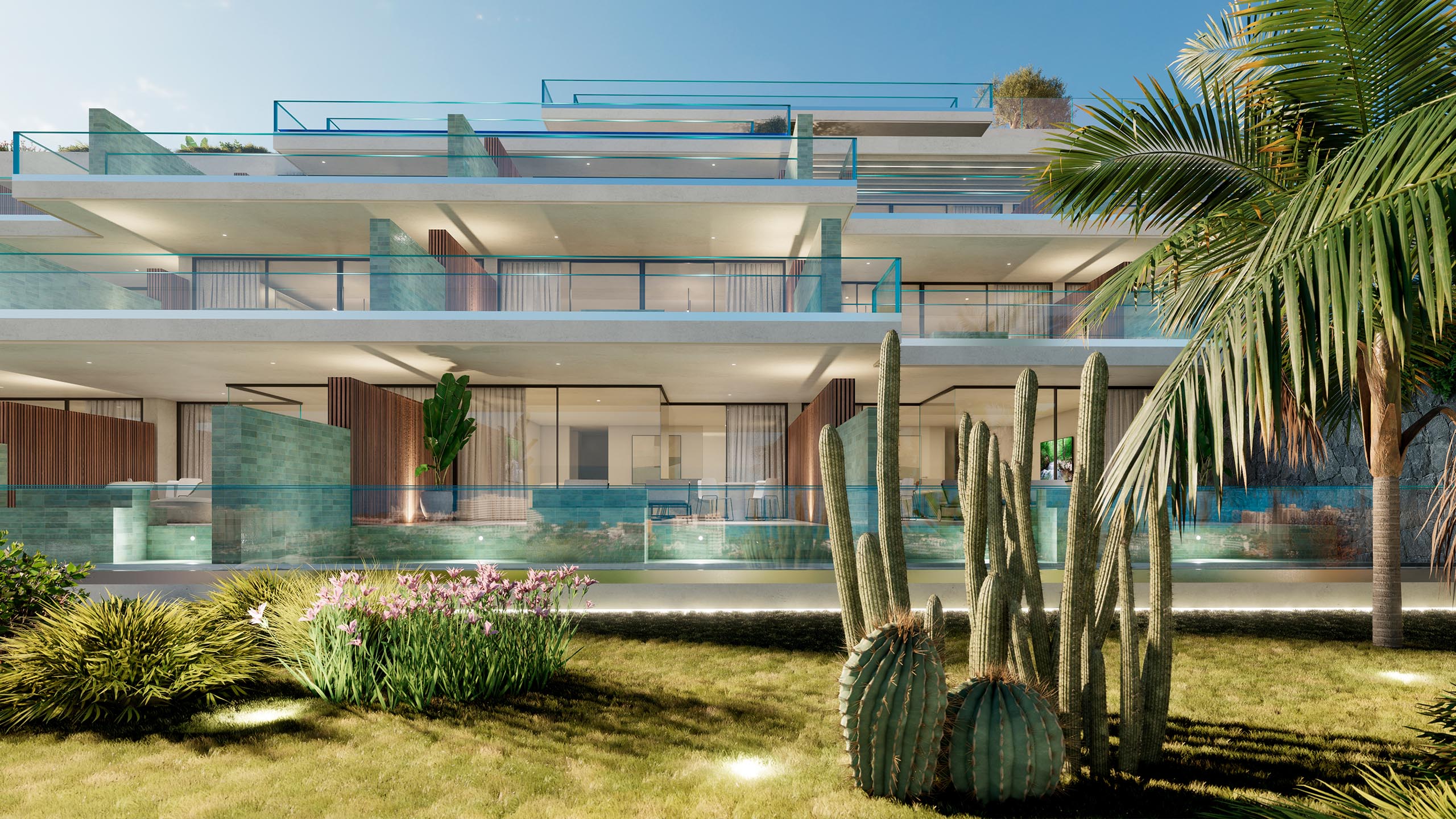 La cuidada selección de viviendas ofrecen espacios exteriores con terrazas y piscina infinity privada prolongadas hacia el horizonte, mientras que las zonas ajardinadas, el gimnasio y el espacio polivalente se integran armoniosamente con el entorno natural, creando un complejo completo para quienes valoran la calma y la sofisticación en cada detalle.